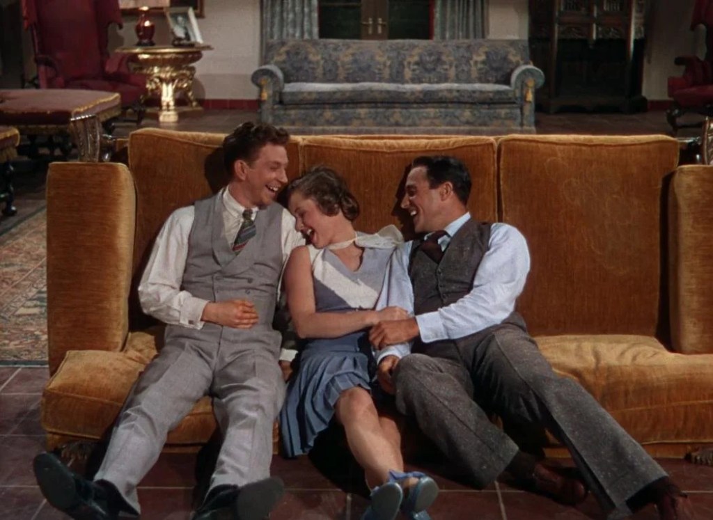 For example, when read through the same interpretive lens that the Code trained audiences to develop, Singin’ in the Rain (1952) reveals more than it first appears to. It isn’t just a love story between two people; it’s really about three. It’s a trio bound together by rhythm, laughter, and a kind of affection that feels like love even when it isn’t named as such. Their connection carries the warmth and tension of romance but without the need to declare it, living instead in gesture, movement, and shared breath. Don, Cosmo, and Kathy’s relationship resists the usual triangle-related hijinks of jealousy or competition. Instead, it’s marked by a kind of mutual devotion that feels both joyful and deeply queer. Once you notice it, the film feels different. Something unspoken comes into focus.